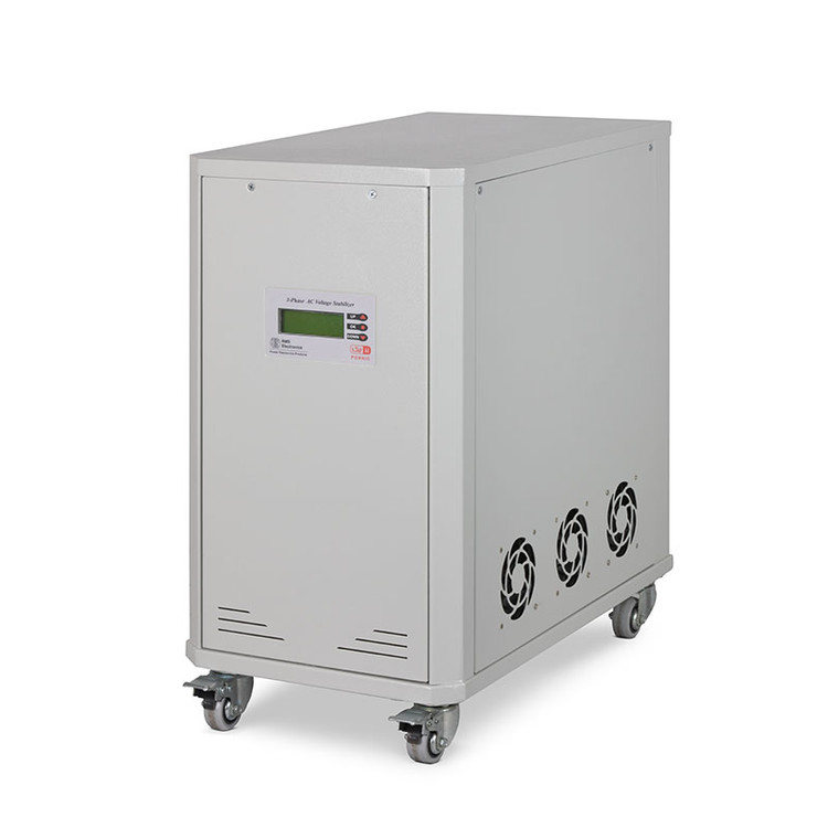 در این ترانس اتوماتیک 3 فاز جبران نوسانات هر فاز به طور مستقل و جداگانه انجام میشود. لذا ولتاژ خروجی کاملا متعادل بوده و بهبود چشمگیری در عملکرد مصرفکنندههای سهفاز ایجاد میشود. جبرانسازی ولتاژ با تنظیمات پیشفرض دستگاه در بازه بسیار وسیع 130 تا 305 ولت در هر فاز و به صورت کاملا هوشمندانه انجام میشود. در صورت خروج ولتاژ از این بازه، مدار حفاظت در برابر افت یا افزایش بیشازحد ولتاژ، خروجی دستگاه را قطع میکند. برای حفاظت بیشتر از مصرفکنندهها در لحظه وصل برق، 180 ثانیه تاخیر قابل تغییر توسط کاربر درنظر گرفته شده است.
