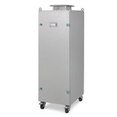این تجهیز ضمن برخورداری از سیستم کنترل میکروپروسسوری، با بهرهمندی از صفحه نمایش کریستال مایع، رابط کاربری بسیار مناسبی را برای نمایش و تنظیم انواع پارامترهای سیستم فراهم نموده است. جبرانسازی ولتاژ با تنظیمات پیشفرض دستگاه در بازه بسیار وسیع 140 تا 300 ولت در هر فاز و به صورت کاملا هوشمندانه انجام میشود و در صورت خروج ولتاژ از این بازه، مدار حفاظت در برابر افت یا افزایش بیشازحد ولتاژ، خروجی دستگاه را قطع میکند. برای حفاظت بیشتر از مصرفکنندهها در لحظه وصل برق، 180 ثانیه تاخیر قابل تغییر توسط کاربر درنظر گرفته شده است.